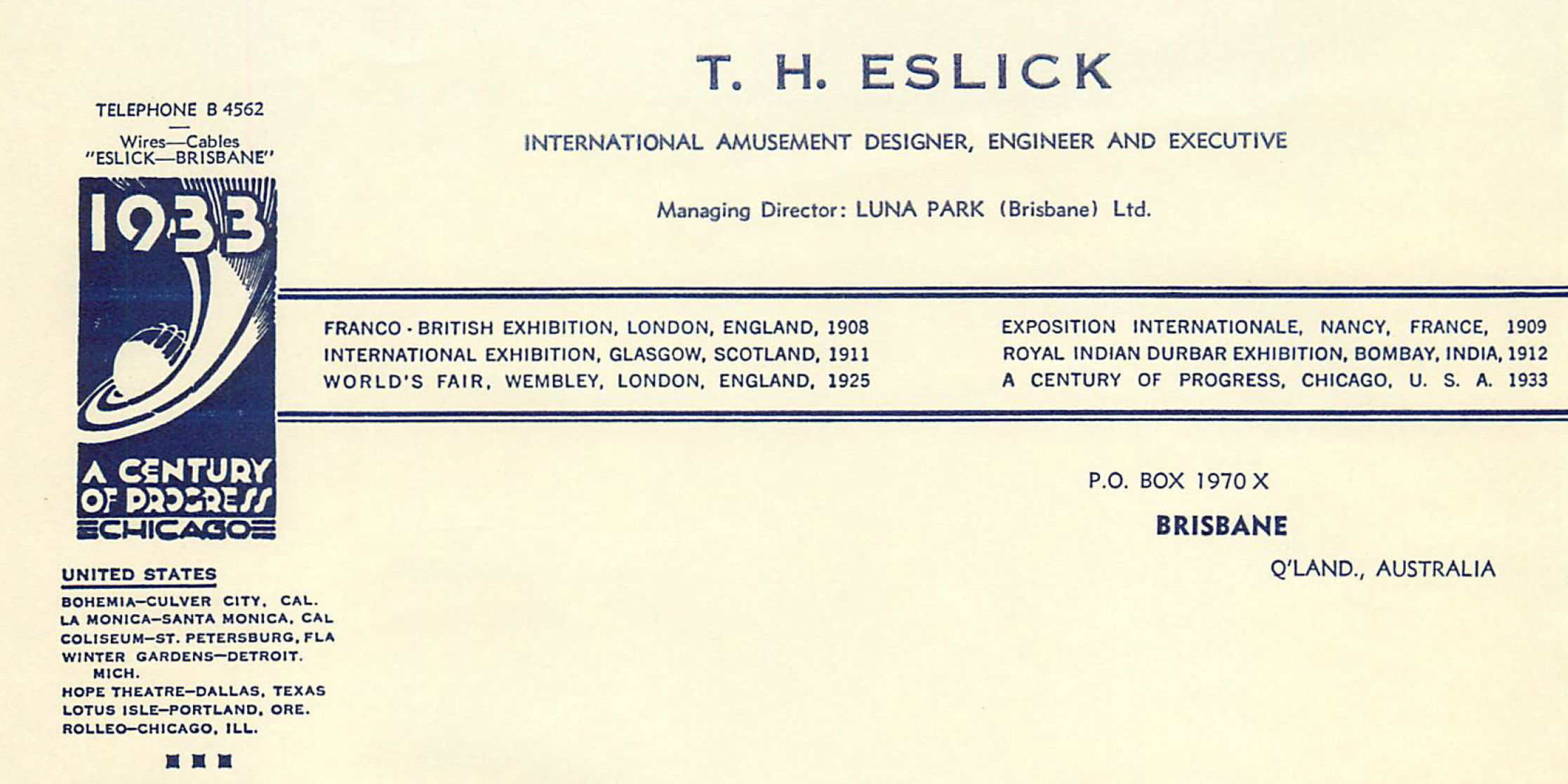 Eslick's most ambitious Australian project, Brisbane's Cloudland, survived from 1939 until its demise and demolition in 1982.